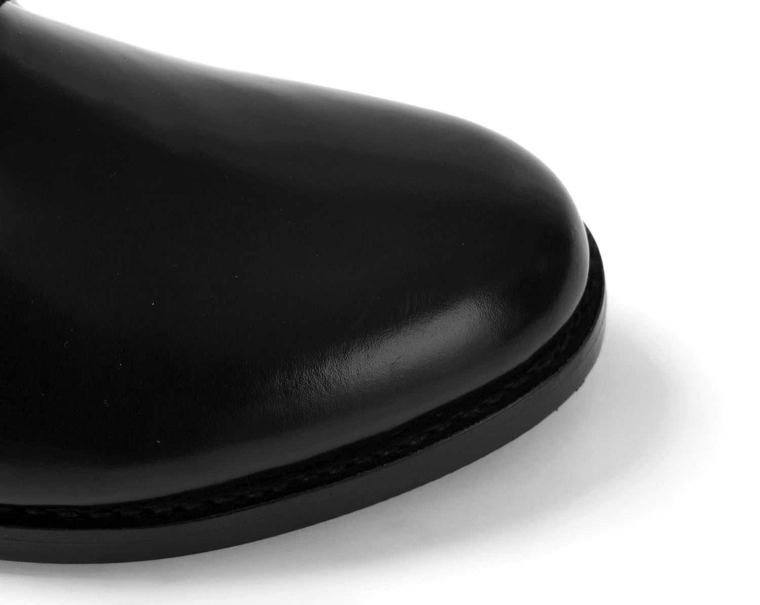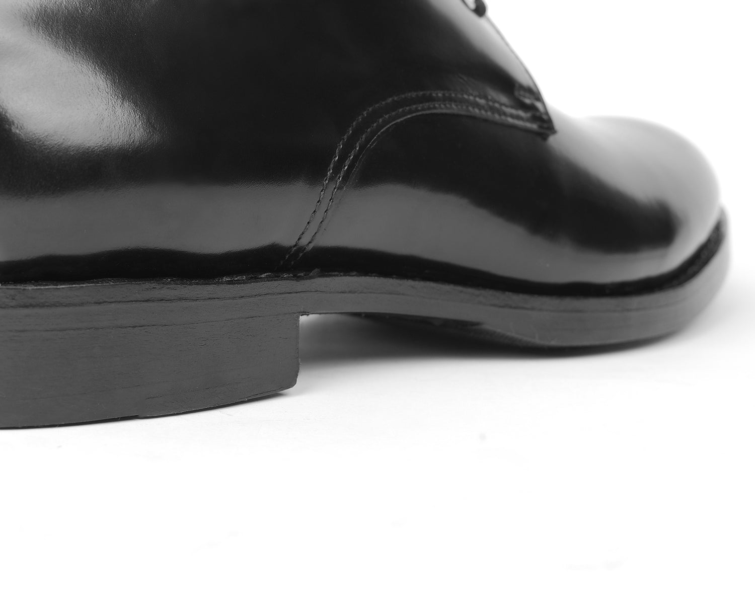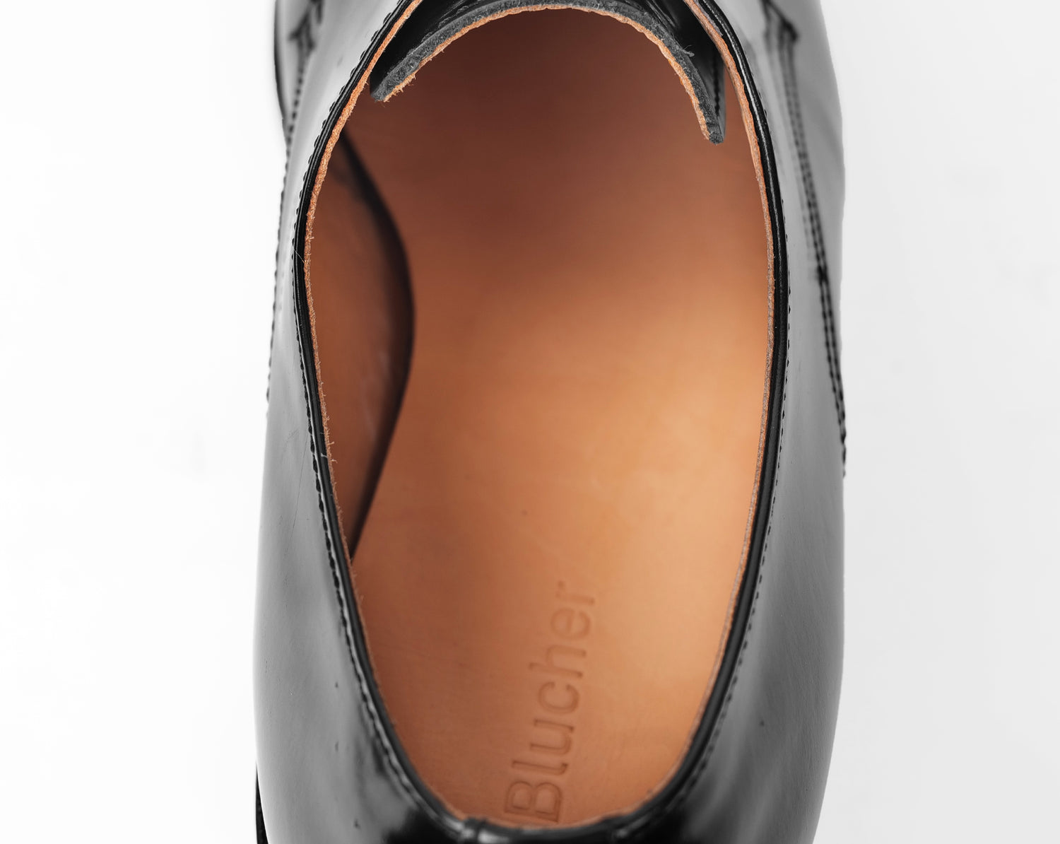 The Blucher's upper is stitched to the sole through the footbed, ensuring a firm grip. This process balances the entire shoe from all sides. The footbed is wrapped in pure leather lining, safeguarding your foot from synthetic or low-quality fabric allergies.